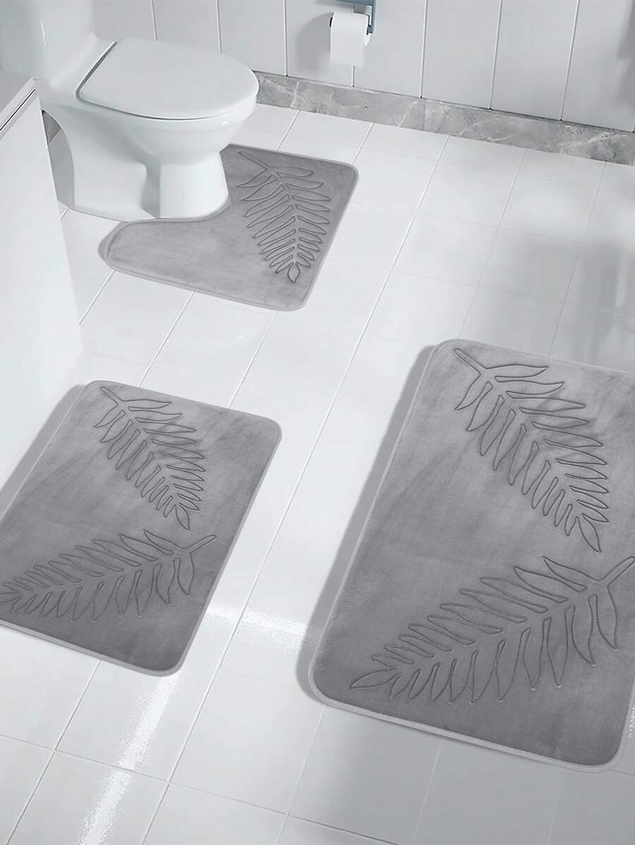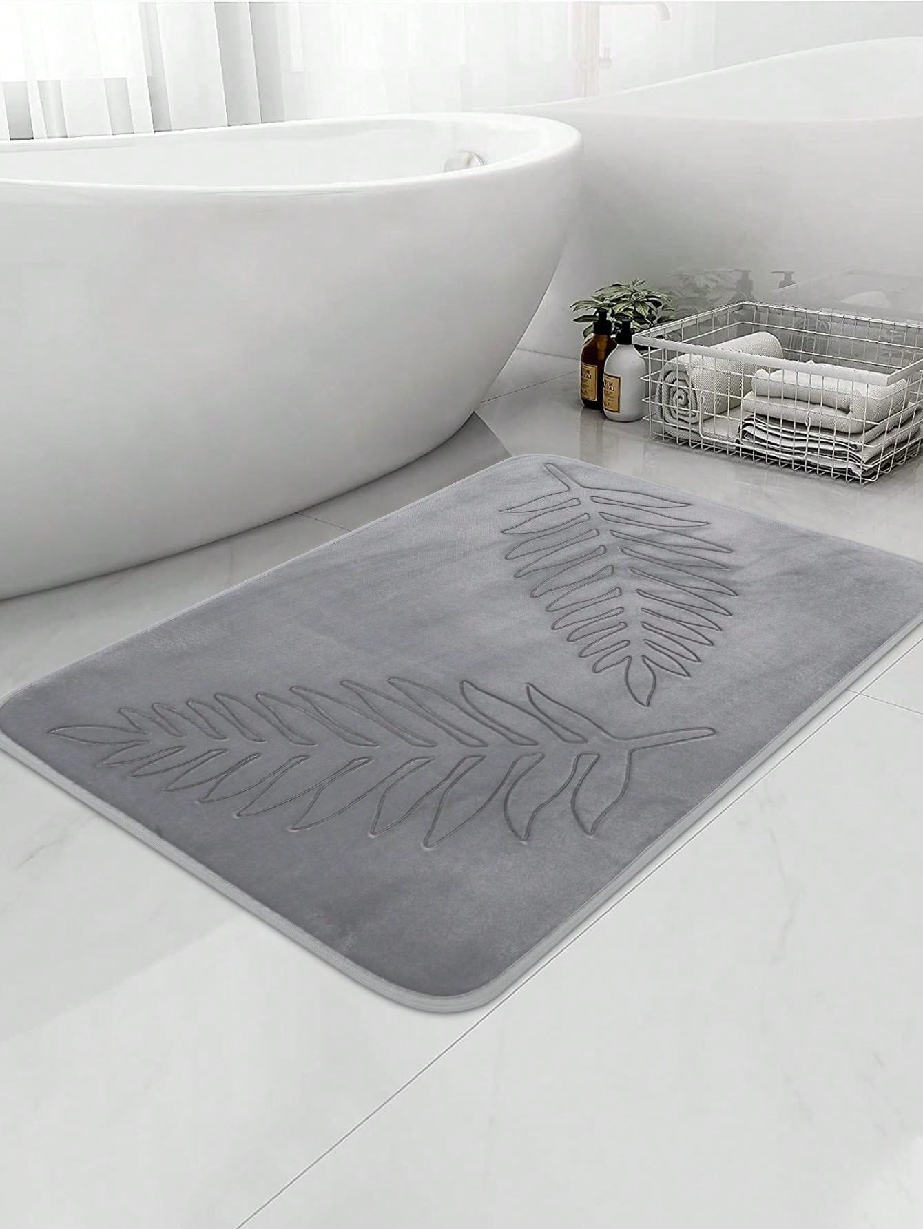 1pc Simple Style Polyester Fiber U-shaped Memory Foam Absorbent Rug With Leaf Pattern, Suitable For Bathroom, Living Room, Home Use