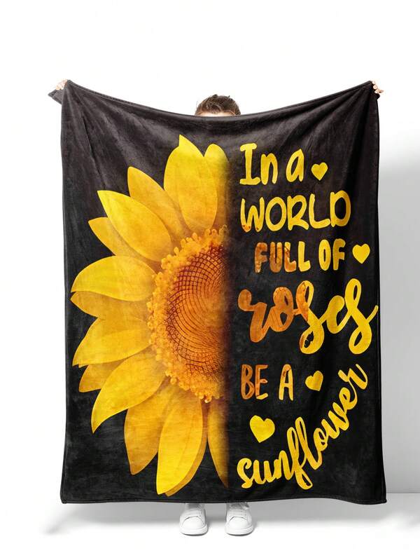 1pc Simple Sunflower Print Premium Gift Flannel Blanket, Leisure Style, Soft & Warm, Suitable For Nap, Pets, Travel, Living Room Sofa, All Seasons