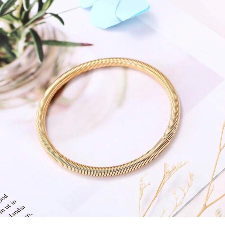 1pc Simple Version Stainless Steel Spring Elasticity Bracelet Fit For Both Men And Women