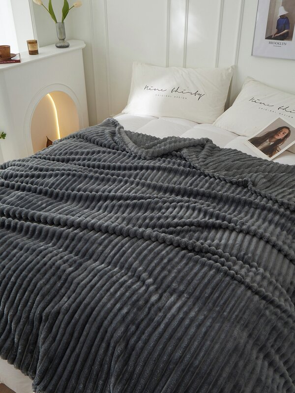 1pc Single Layer Thickened Faux Rabbit Fur Drawstring Solid Color Blanket With Gift Packaging