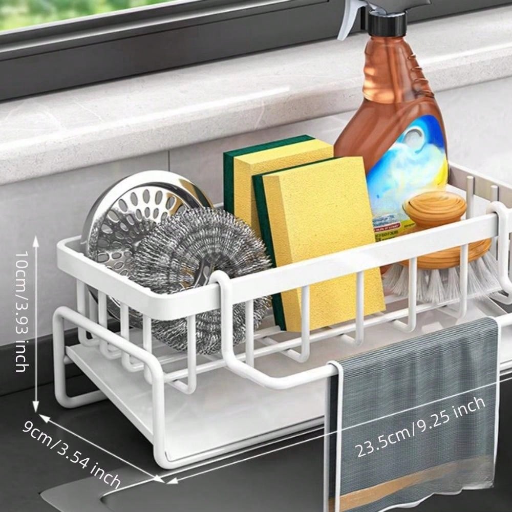 1pc Sink Caddy, Sponge Drain Rack With Dishcloth Holder, Stainless Steel Sink Storage Rack For Sponge Dish Soap Dishcloth Brushes Rags, Kitchen Countertop Organizer, Kitchen Accessories