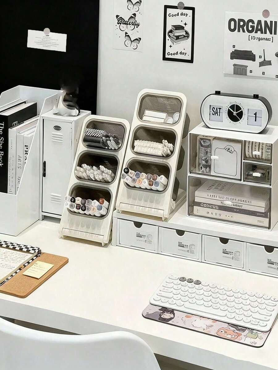 1pc Slanted Large Capacity Pen Holder, Suitable For Desktop Cosmetic Storage Box, Office Organizer Box And School Supplies