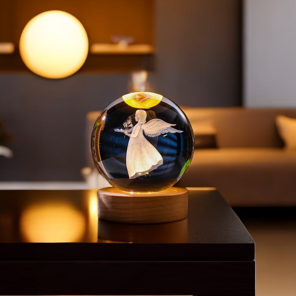 1pc Small Angel 3d Carving Crystal With Warm Light Usb Base, 6cm Or 8cm Diameter, Ornament Home Decoration Collectible. Great Gift Option For Family, Friends, Couples, Girls, Best Friends On Valentine'S Day Or Other Holidays. This Lamp Utilizes Material With Elaborate Handcraft, Exhibiting Unique Design And Exquisite Workmanship. It Creates Romantic Festive Atmosphere With Lighting.