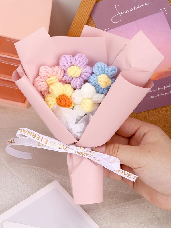 1pc Small Artificial Flower Bouquet, Pink Knitting Flower Bundle, For Gift