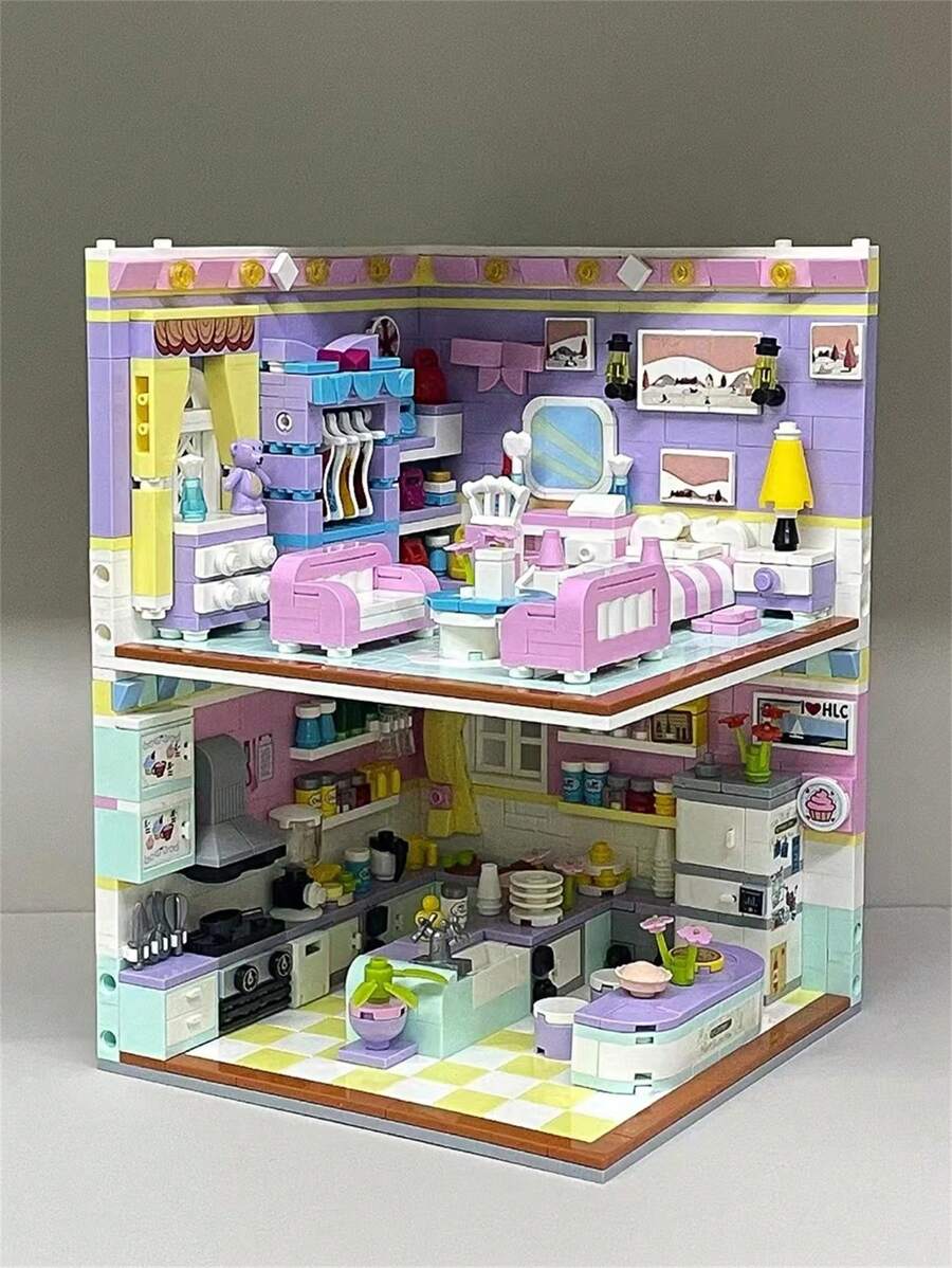 1pc Small Building Blocks Set, Miniature Particle Puzzle House, Insert Puzzle Kitchen Model, Suitable For Furniture Decoration And Ornament (Some Parts Random Color)