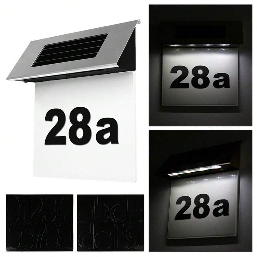 1pc Small/Large Solar Powered Wall Mounted Doorplate Light-Number, Letters, Digits (Stainless Steel/Abs Mixed Material)