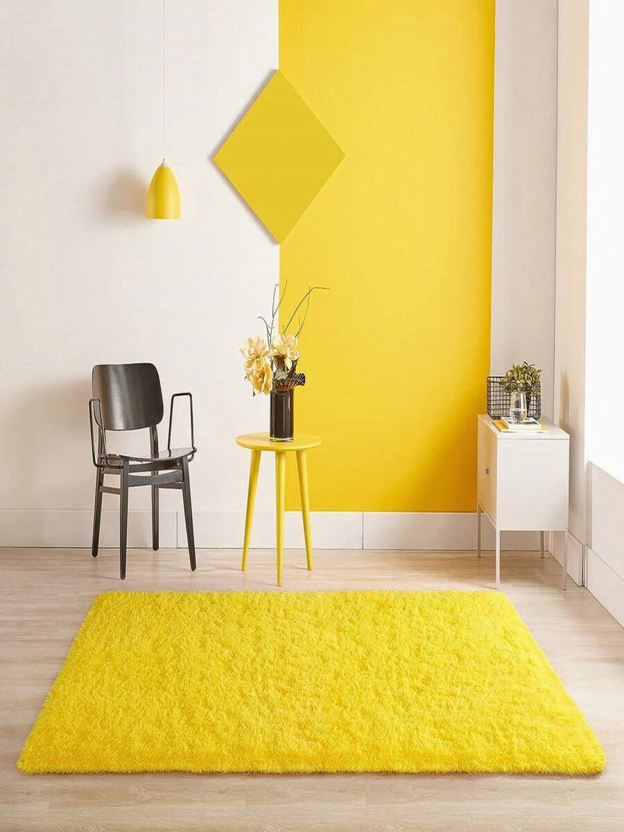 1pc Soft Plush Carpet, Fluffy Decorative Rug For Living Room & Bedroom, Non-slip Furry Area Rug Suitable For Dorm, Nursery, Kids Girls Room Home Decor, Yellow