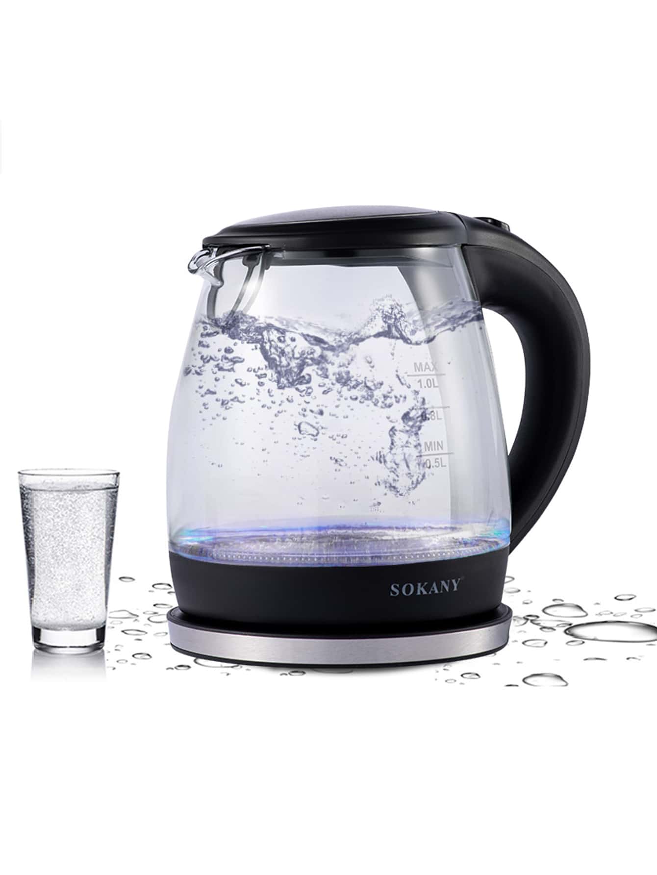 1pc Sokany Plug-in Type 1l High Power Electric Kettle Sk-613, 2200w High Power, Energy Gathering Heating, Glass Pot Body, Quick Heating, Boil Dry Protection, Low Noise, One Button Start, Heat-resistant Handle, Thickened Material, Lid Opening Button