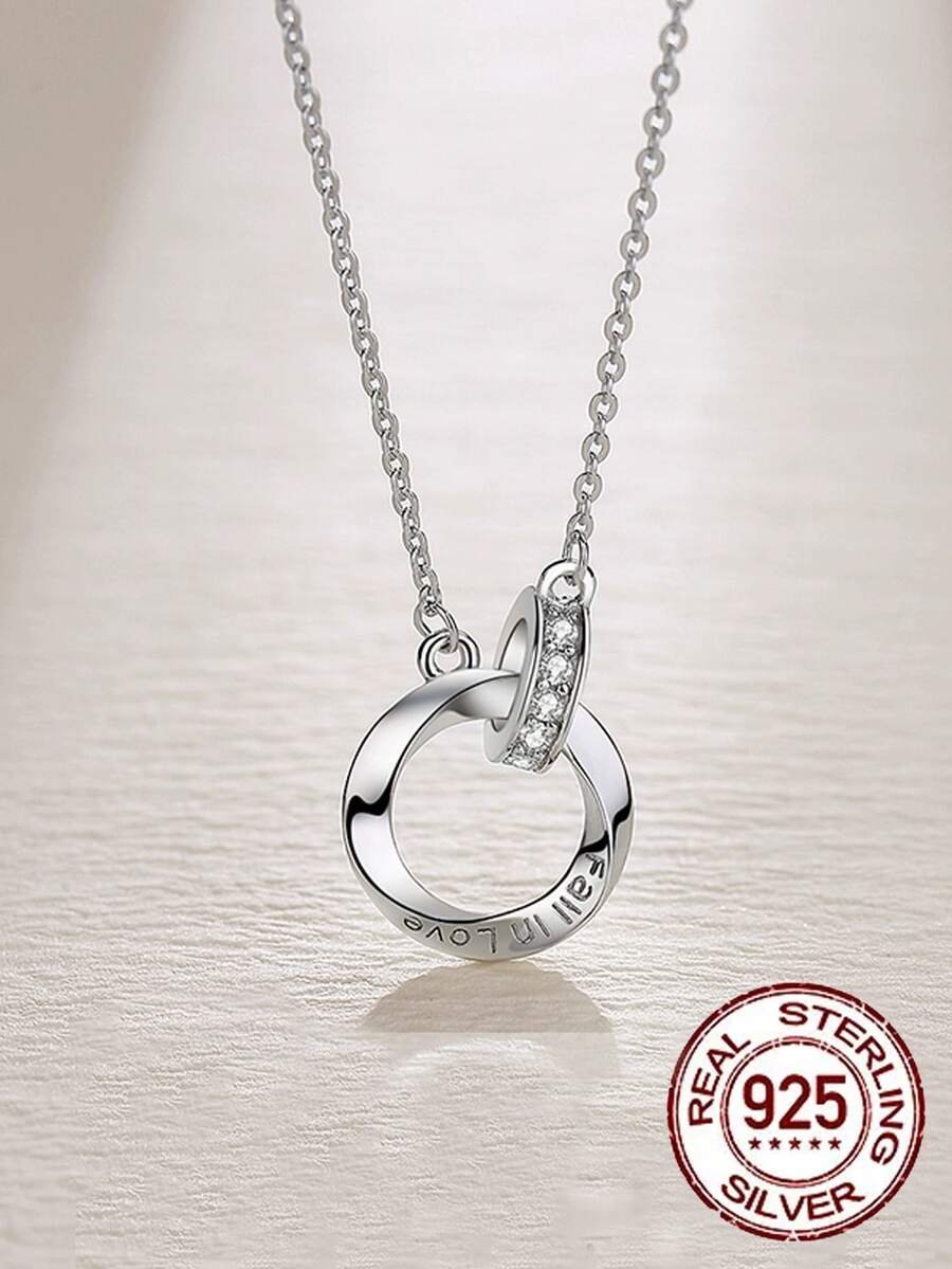 1pc Solid 925 Sterling Silver Necklace With Cubic Zirconia Pave, Round Link Chain For Women's Luxury Jewelry Collection
