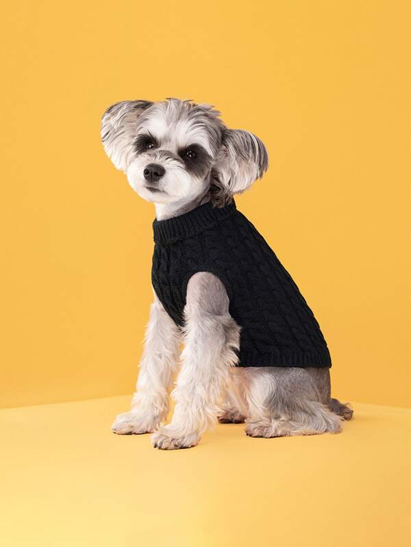 1pc Solid Black Spring/autumn Knitted Pet Sweater Suitable For Cats And Dogs