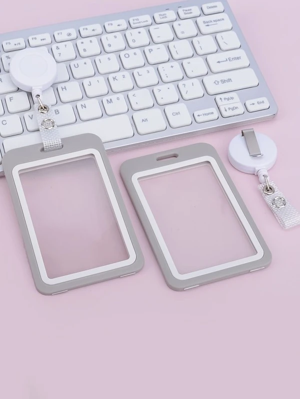 1pc Solid Color Card Holder, Simple Portable Card Holder With Badge Holder For School Student, Office Worker