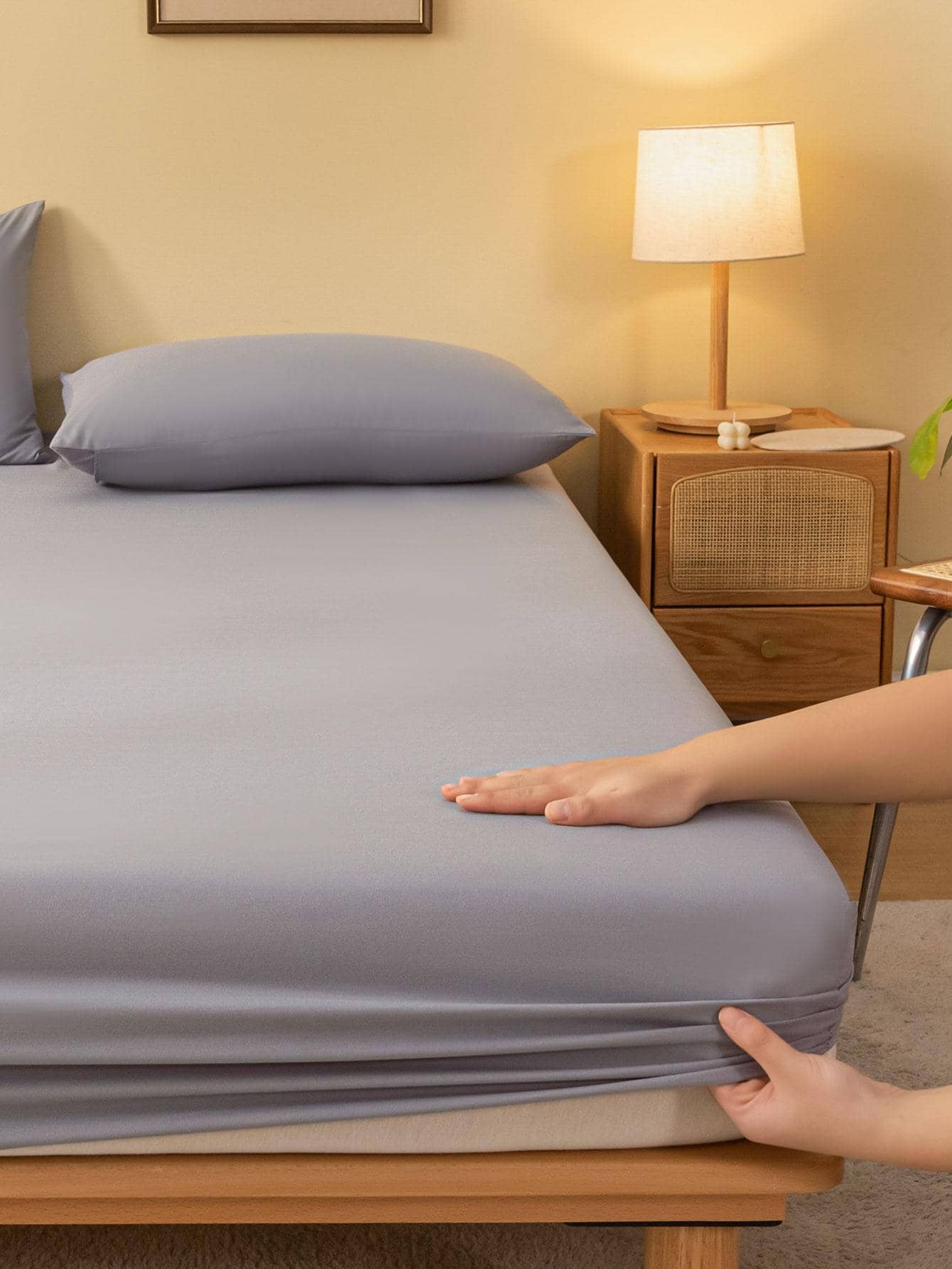 1pc Solid Color Fitted Sheet, Modern Fabric Bedding Fitted Sheet For Bedroom
