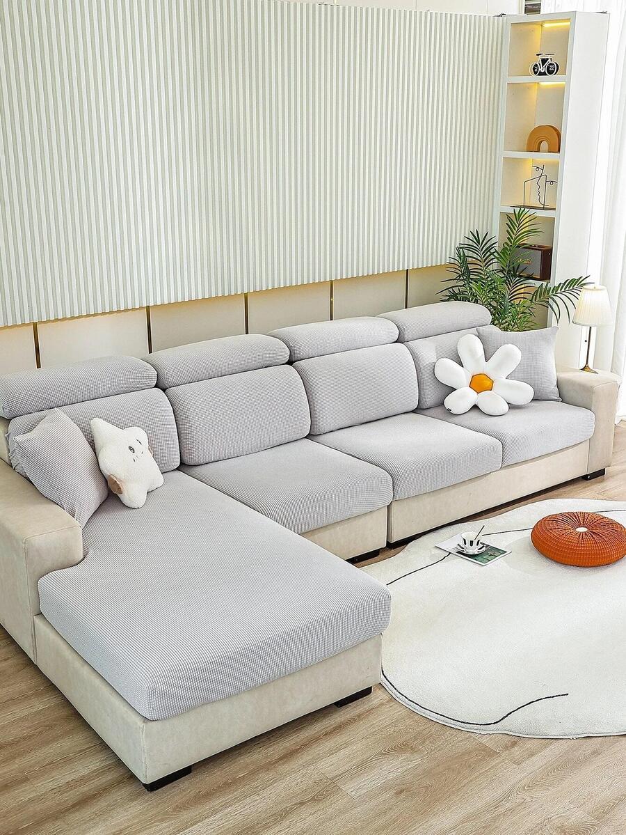 1pc Solid Color Grey Sofa Cushion Cover, Simple Polyester Sofa Seat Cover For Living Room, All Season