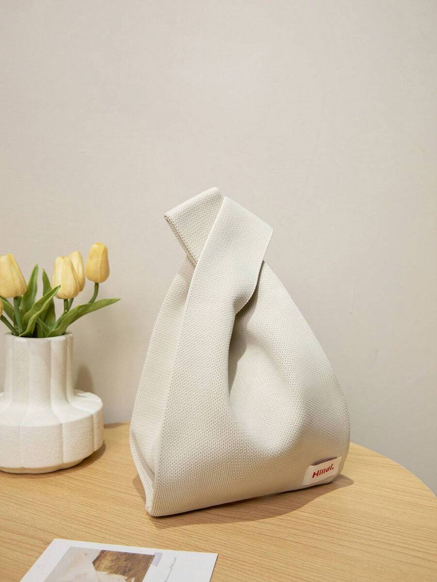 1pc Solid Color Hollow Out Crochet Breathable Lightweight Foldable Open Top Casual Vacation Women's Handbag, Suitable For Daily Life, Vacation, School, And Commute