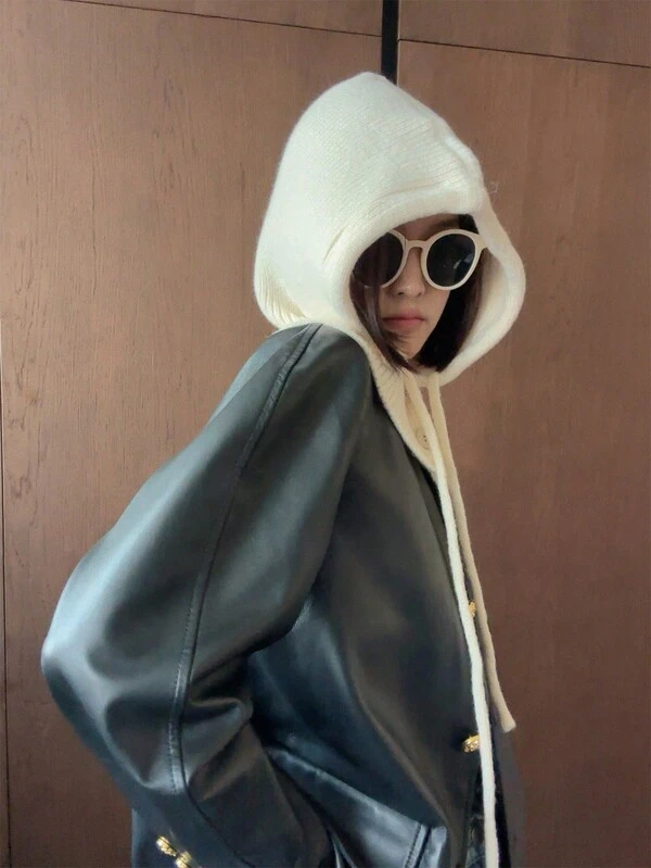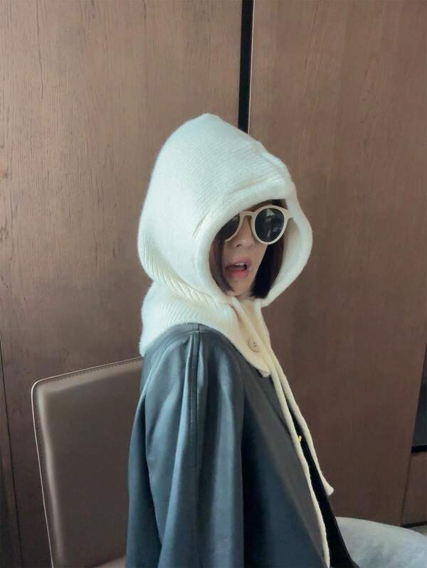 1pc Solid Color Knit Hat With Hanging Rope, Unisex Couple Style, Outdoor All-match Winter Beanie For Daily Wear, Windproof & Warm