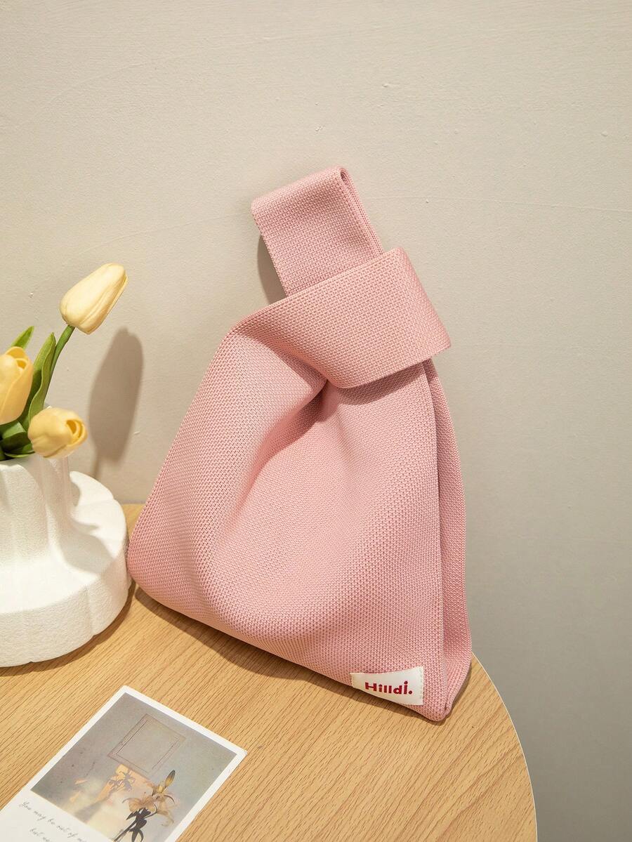 1pc Solid Color Knitted Hollow Out Crochet Breathable Lightweight Foldable Open Top Casual Vacation Women'S Handbag Wristlet Bag For Daily Life, Holidays, School, And Commute All Seasons