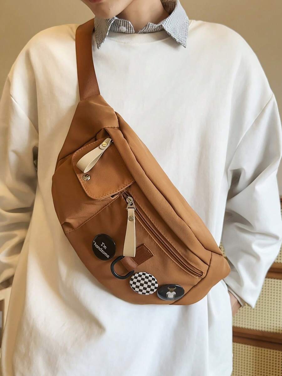1pc Solid Color Nylon Material Versatile Casual Chest Bag For Men, Suitable For Travel And Commute Fanny Pack Sling Bag Waist Bag Bum Bag Valentines Gift For Men