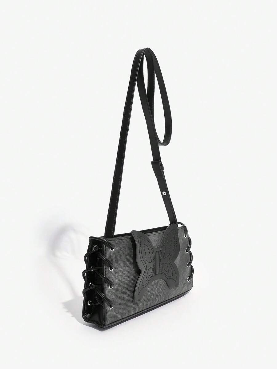 SHEIN ICON 1pc Solid Color Pu Leather Butterfly Decoration Simple All-match Crossbody Bag