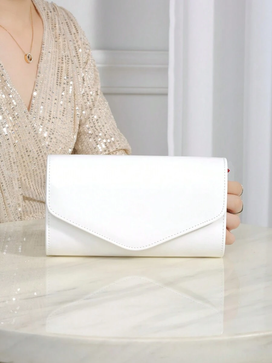 1pc Solid Color Pu Magnetic Closure Chain Clutch Bag For Daily Use, Date And Party, Essential Wedding Items,Perfectly Matching With Graduation Dress, Prom Dresses