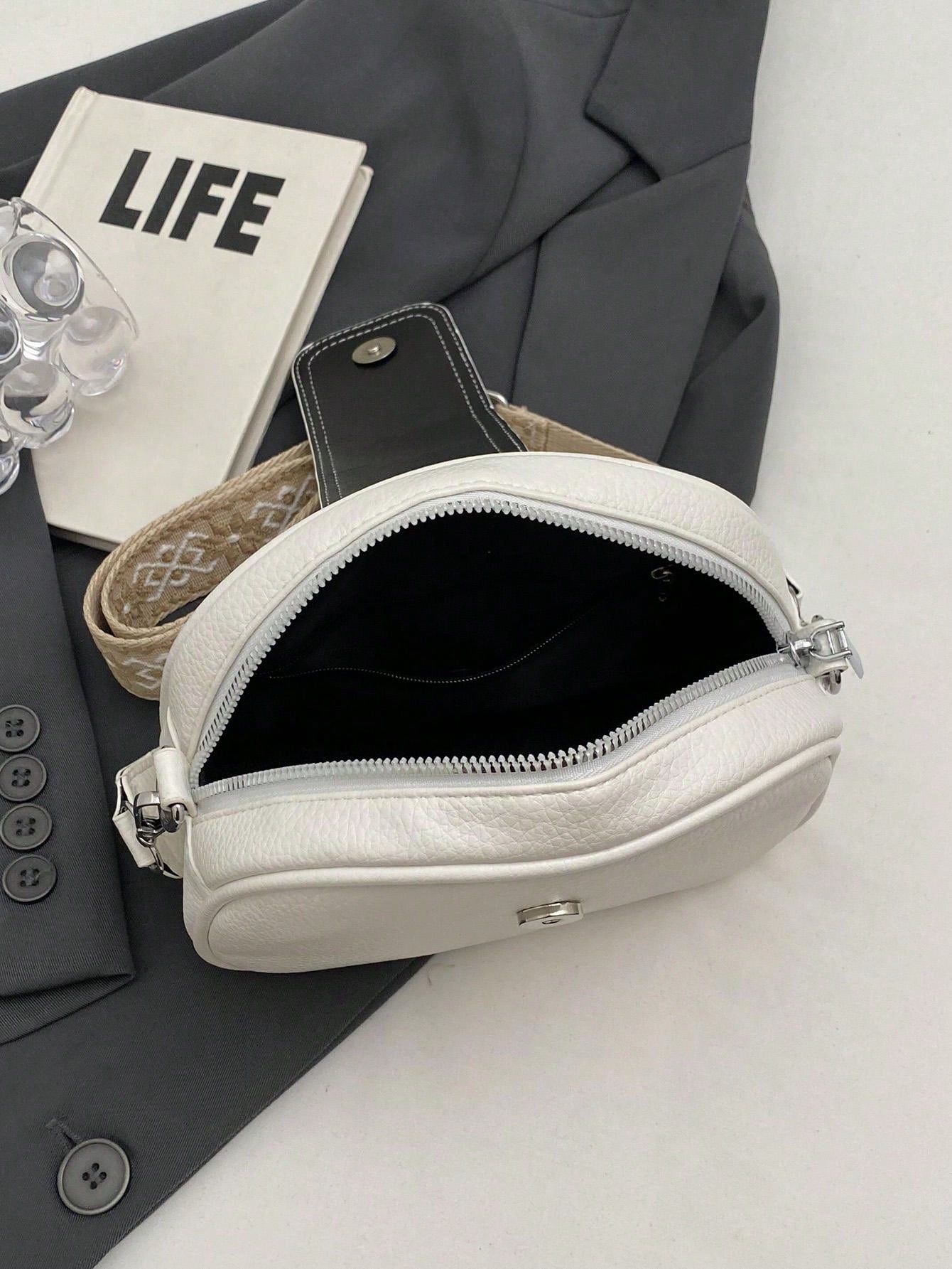 1pc Solid Color Pu Portable Magnetic Closure Fashion Crossbody Bag Suitable For Women'S Daily Use