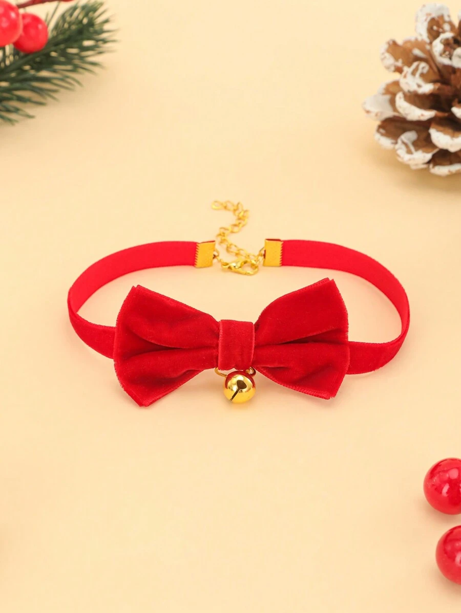 1pc Solid Color Red Bow Tie Necklace For Pets, Photography Prop