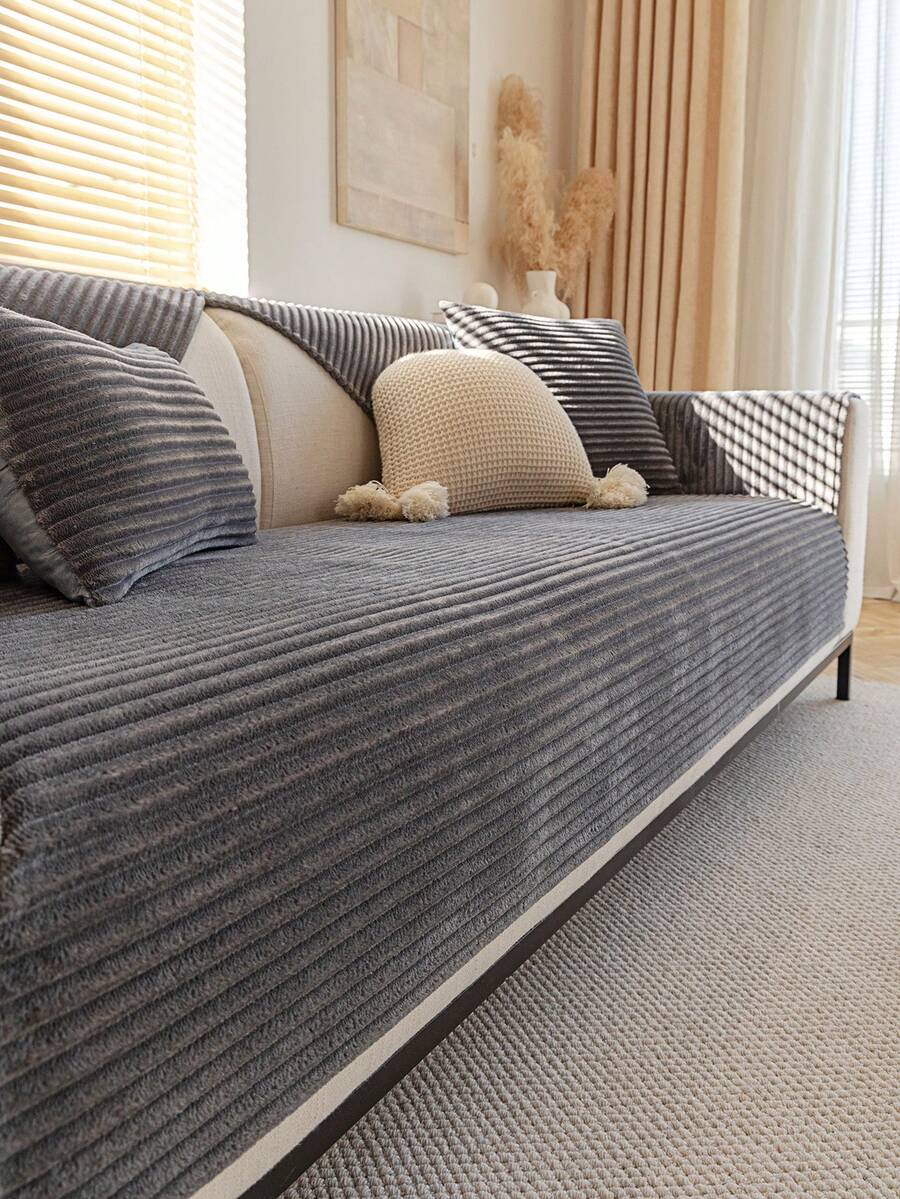 1pc Solid Color Sofa Towel, Grey Non-slip Sofa Seat Liner, For All Season