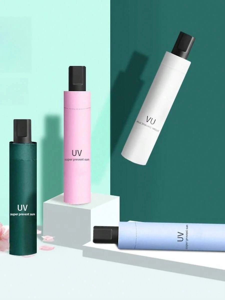 1pc Solid Color Uv Protection 3-folding Umbrella, Sun & Rain With Black Coating, Summer/winter Use For Men And Women