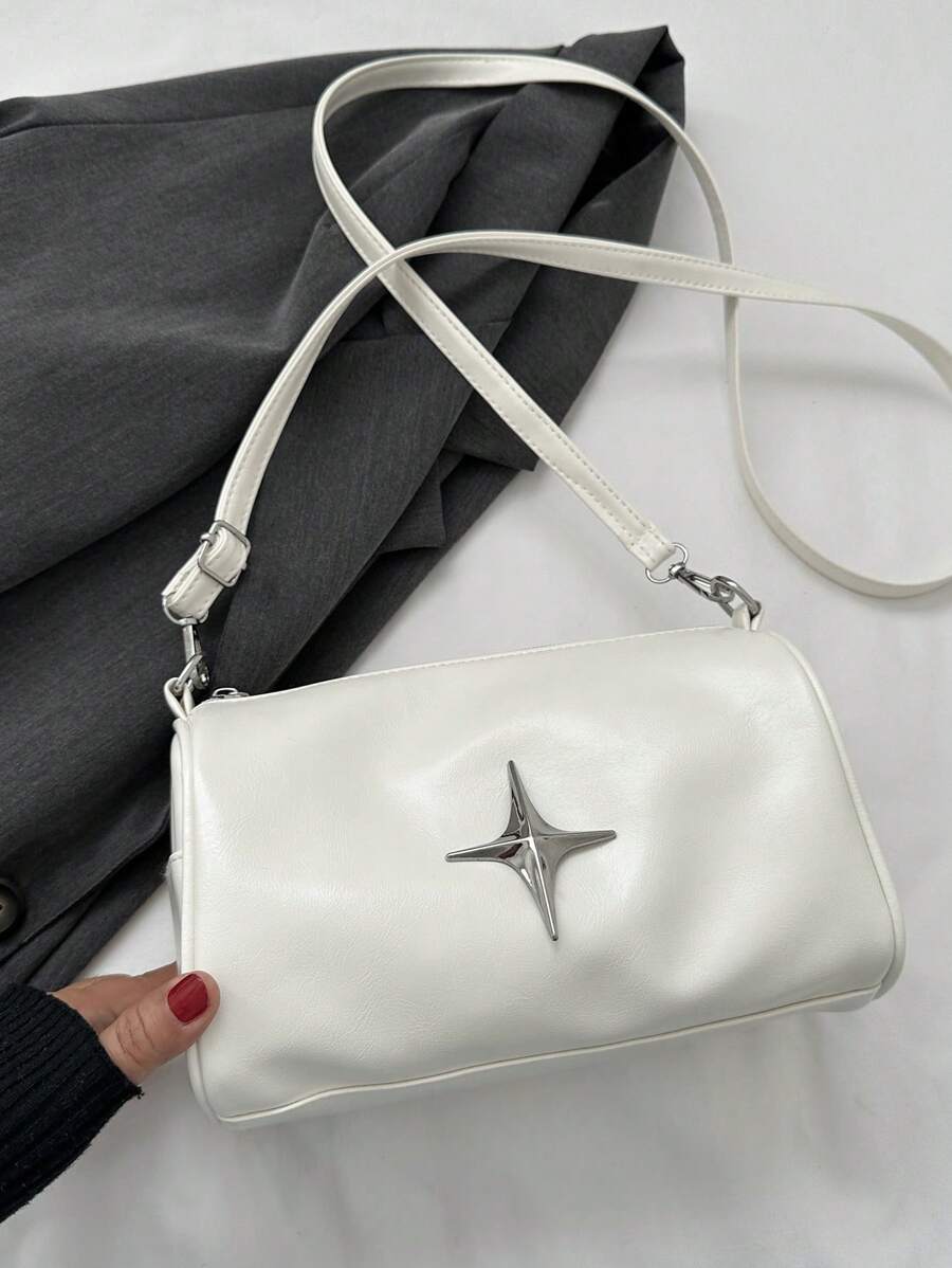 1pc Solid Color Vintage Simple Cylindrical Bucket Crossbody Bag