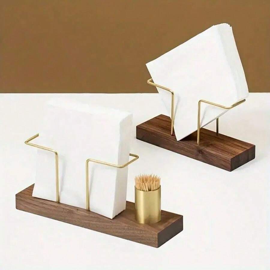 1pc Solid Wood Creative Vertical Tissue Holder, Napkin Holder For Kitchen Dining Table,Cafe Hotel Restaurant Desktop Napkin Holder, Simple Table Tissue Holder With Wood Base For Paper Napkins, Modern Dispenser For Home Decor