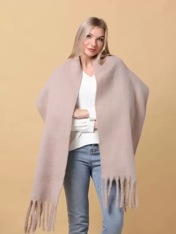 1pc Solid women Scarf With Tassel Hem For Outdoor Activities, Windproof & Warm Shawl , Suitable For Daily Use