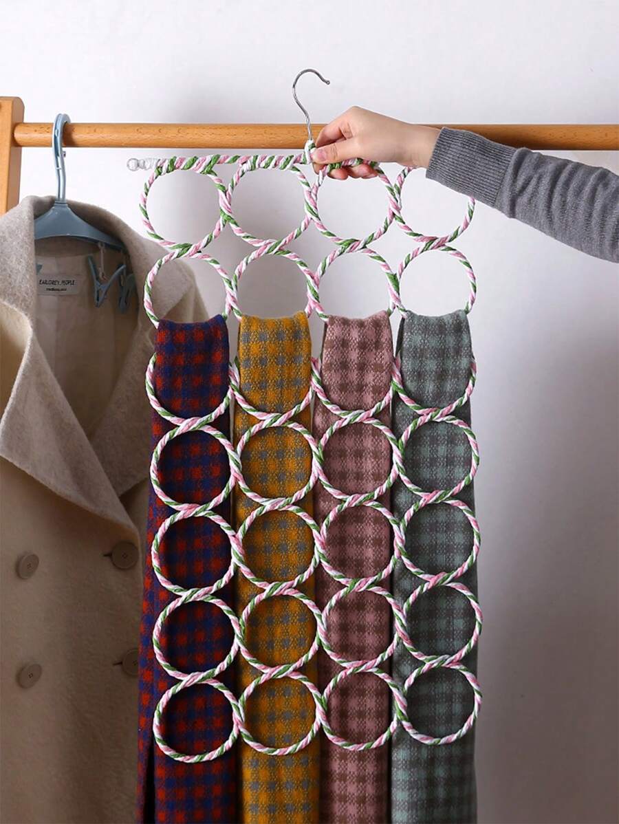 1pc Space-Saving Wall Closet Hanger With 28 Multicolor Paper Tube Hangers, Perfect For Scarf, Tie And Silk Scarf Storage, Home Organization (Random Rainbow Color)
