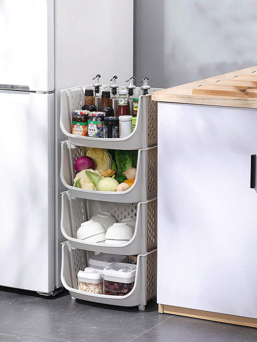 1pc Stackable Kitchen Basket Desktop Storage Organizer For Vegetables, Fruits And Sundries