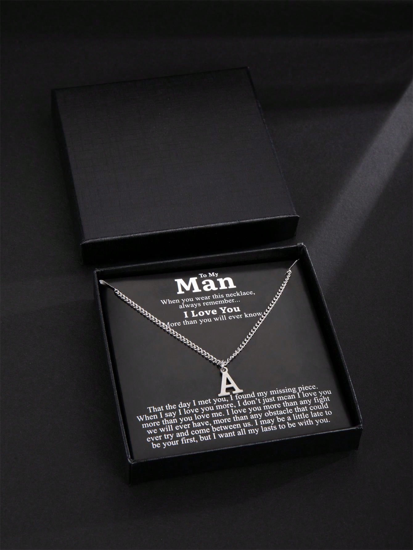 1pc Stainless Steel Alphabet Pendant Necklace Gift Box, Suitable For Surprise Gift For Husband, Boyfriend, Personalized Minimalist Style With Surname First Letter