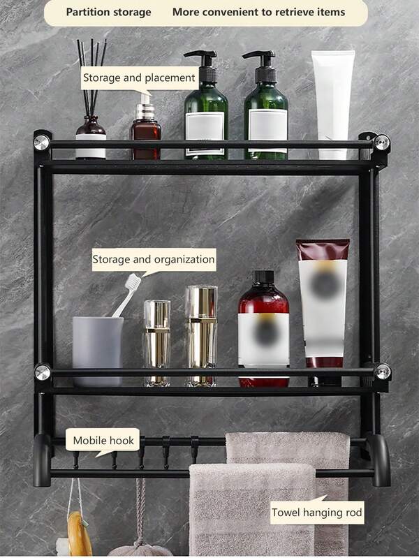 1pc Stainless Steel Bathroom Shelf, Wall Mounted Bathroom Towel Rack, Kitchen Toilet Storage Rack, Punch-Free Tray Organizer