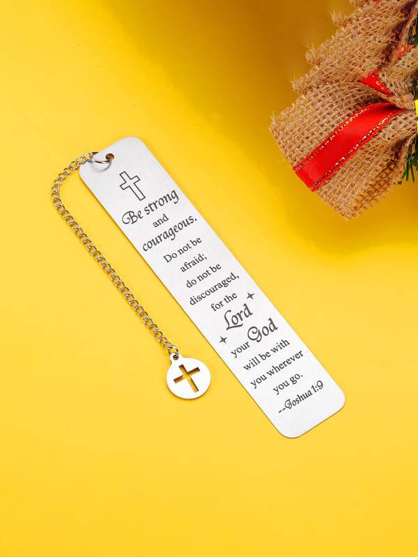 1pc Stainless Steel Bookmark With Inspirational Quote & Cross Design, Fashionable & Personalized Gift For Friends, Family, Children, Graduation Season, Students