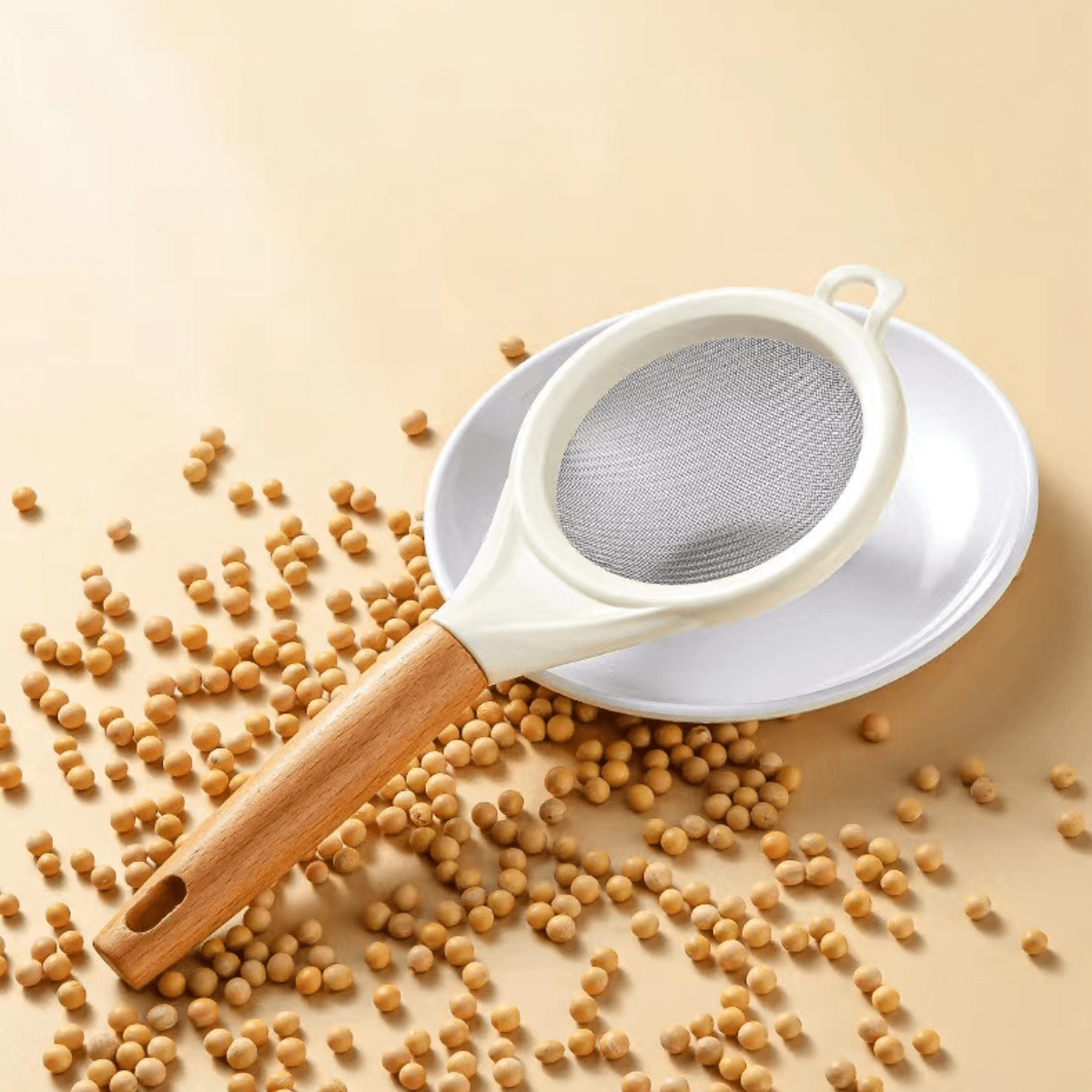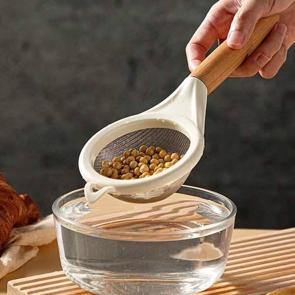 1pc Stainless Steel Colander Ladle Kitchen Baking Flour Sieve Strainer Wholesale Wooden Handle Ladle Filter Mesh For Daily Use