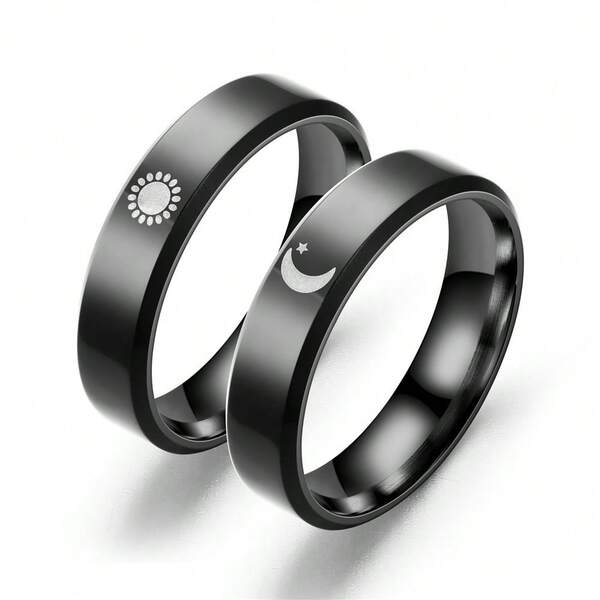 1pc Stainless Steel Couple Rings With Star & Moon Design, Unisex. Suitable For Self, Girlfriend, Boyfriend, Family, Friends, Classmates, Daily Wear