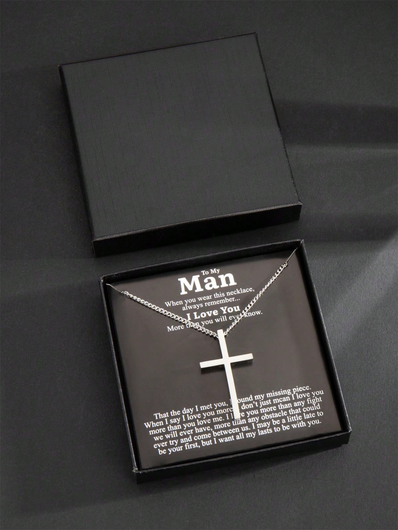 1pc Stainless Steel Cross Pendant Necklace With Gift Box, Perfect As A Gift For Boyfriends To Wish For Peace