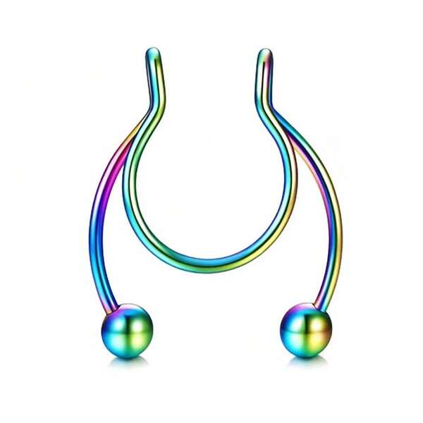 1pc Stainless Steel Deer Horn Shaped Fake Nose Ring, Body Piercing C-Shaped Nose Hoop