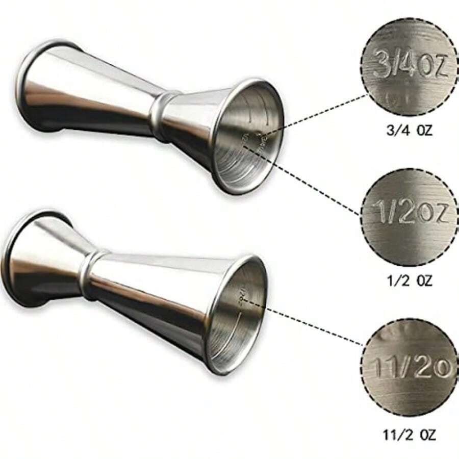1pc Stainless Steel Double-Sided Cocktail Jigger, 2oz/1oz Measuring Cup, Ideal For Home Bar, Milk Tea Shop, Whiskey Bartender, Silver