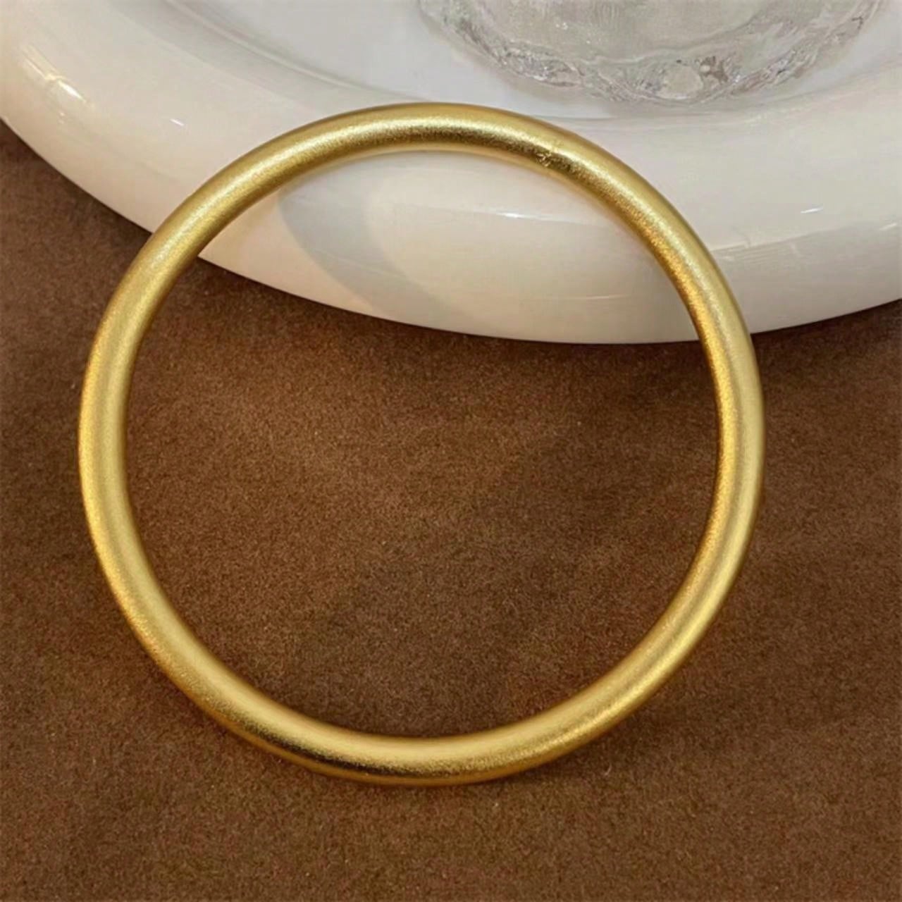 1pc Stainless Steel Fashionable Classic Simple Gold Color Round Thick Bracelet, Embossed Inheritance Designs, Women'S Bangle With High-End Touch Feel