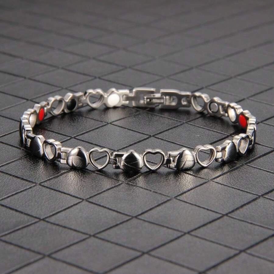 1pc Stainless Steel Glossy Heart-Shaped Link Bracelet For Men And Women,Adjustable Magnetic Brazaletes With Powerful Magnets,Simple Style Jewelry Gifts For Christmas Thanksgiving Day