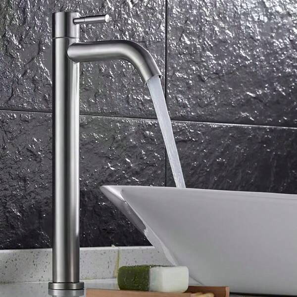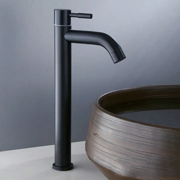 1pc Stainless Steel Single Cold Water Faucet For Bathroom, Kitchen Sink, Balcony - Black