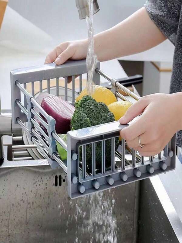 1pc Stainless Steel Sink Filter Blue Drainer Basket Bowl And Dish Rack For The Kitchen