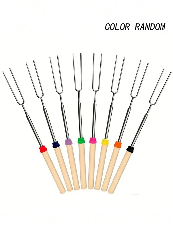 1pc Stainless Steel Telescopic Barbecue Fork Outdoor BBQ Barbecue Sticks, Chicken Wings, Live Legs, Candy Barbecue Stick Needle,Color Random