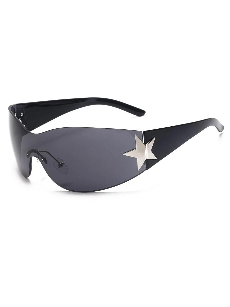 1pc Star Decor Rimless Y2K Gradient Wrap Around Fashion Glasses Punk Eyewear