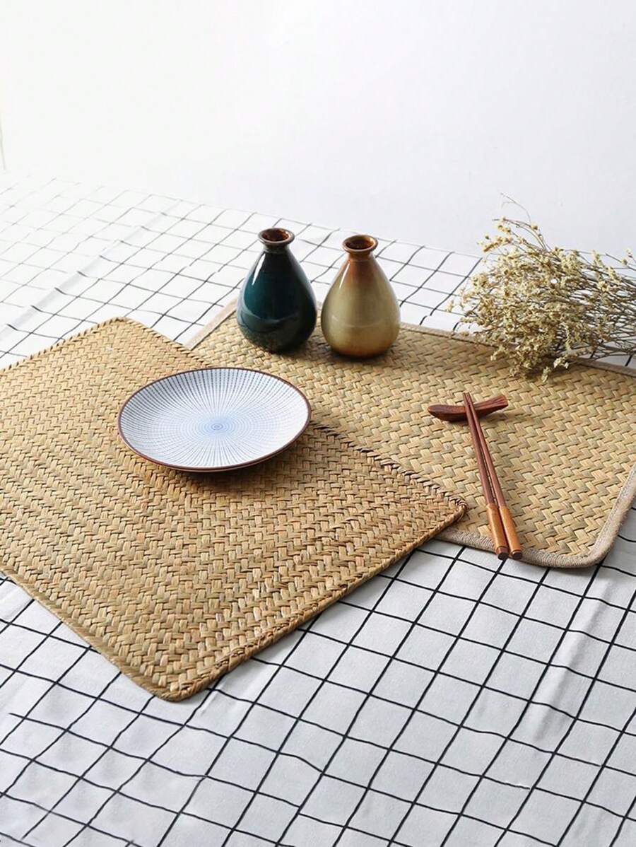 1pc Straw Placemat, Minimalist Woven Table Mat For Home