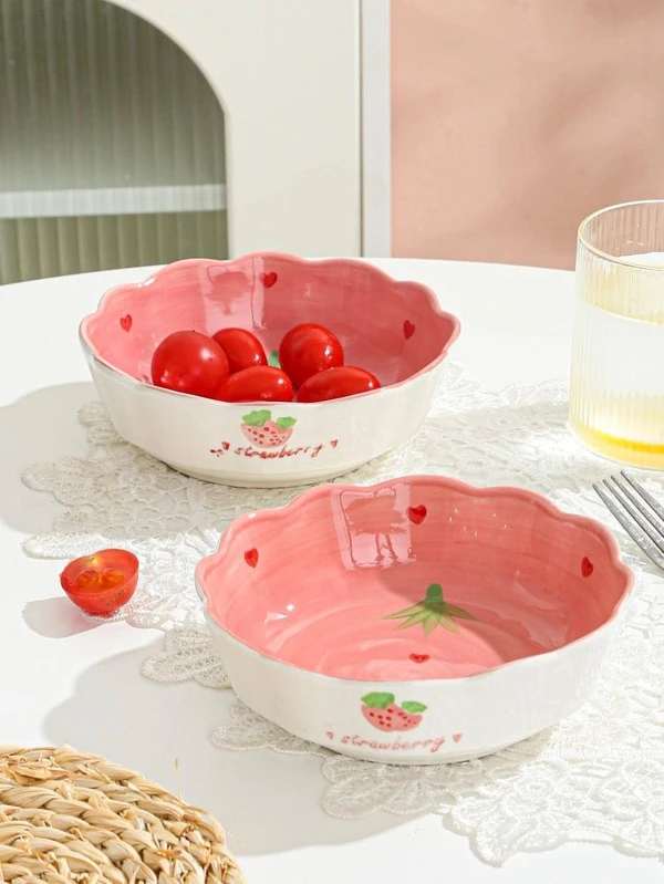 1pc Strawberry Pattern Bowl