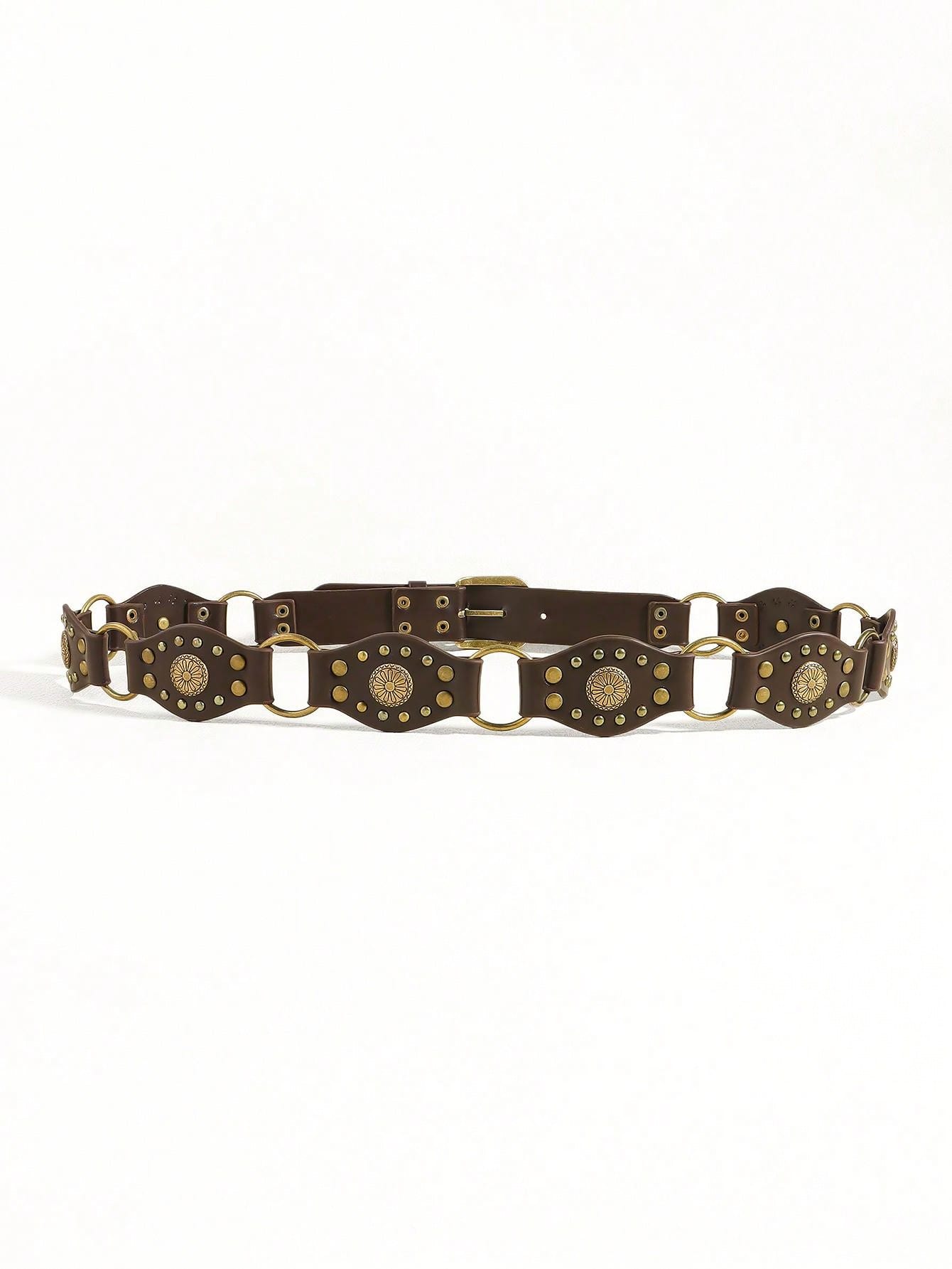 1pc Style & Trend Vintage American Splicing Eyelet & Rivet Belt With Punk Metal Buckle, For Decoration And With Denim Skirt