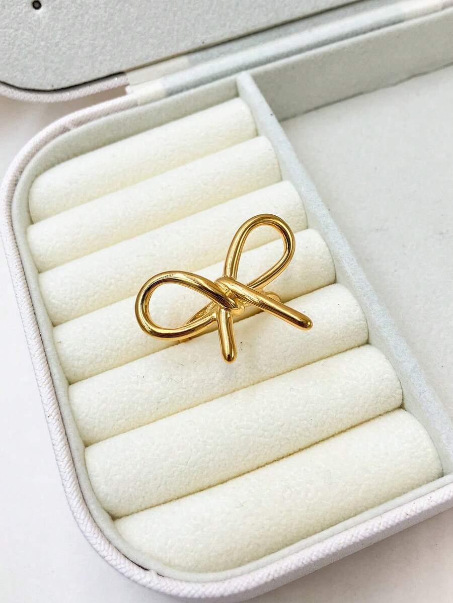 1pc Stylish Cute Exaggerated Bowknot Gold-Plated Stainless Steel Ring Suitable For Women's Daily Wear And Holiday Gifts